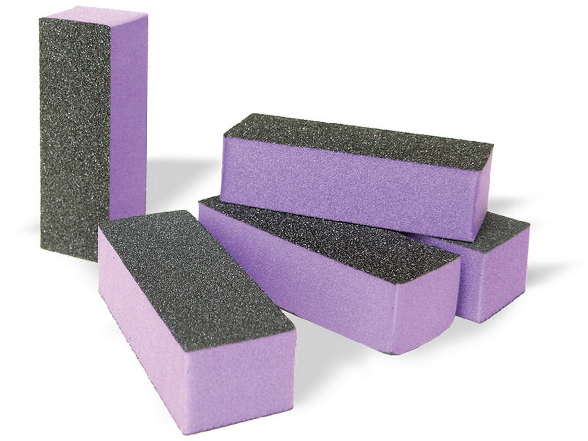 Pulidor profesional de 4 caras en color morado para uñas tanto naturales como para esculpidas con gel UV, perfecto en todas las fases del modelado, con un grano de 240 que te asegura un trabajo más rápido, preciso y de mayor superficie con menos esfuerzo dejando unos acabados perfectos.
